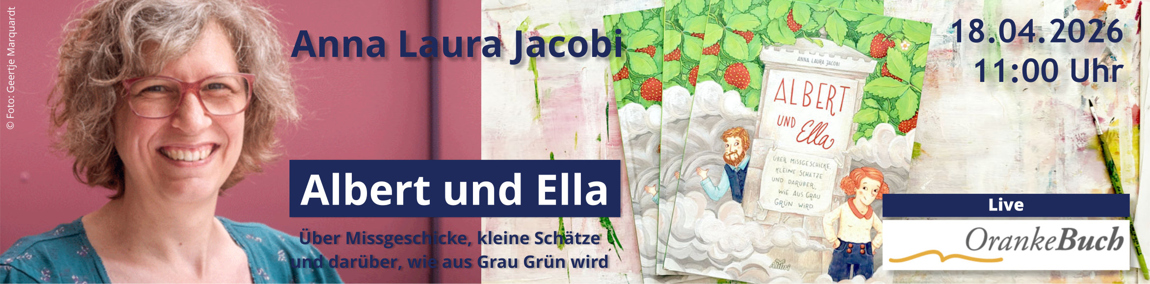 Illustratorin und Kinderbuchautorin Anna Laura Jacobi kommt am Samstag, 18. April 2026 zu uns und präsentiert in einer Lesung für Kinder ihr Buch “Albert und Ella. Über Missgeschicke, kleine Schätze und darüber, wie aus Grau Grün wird”.